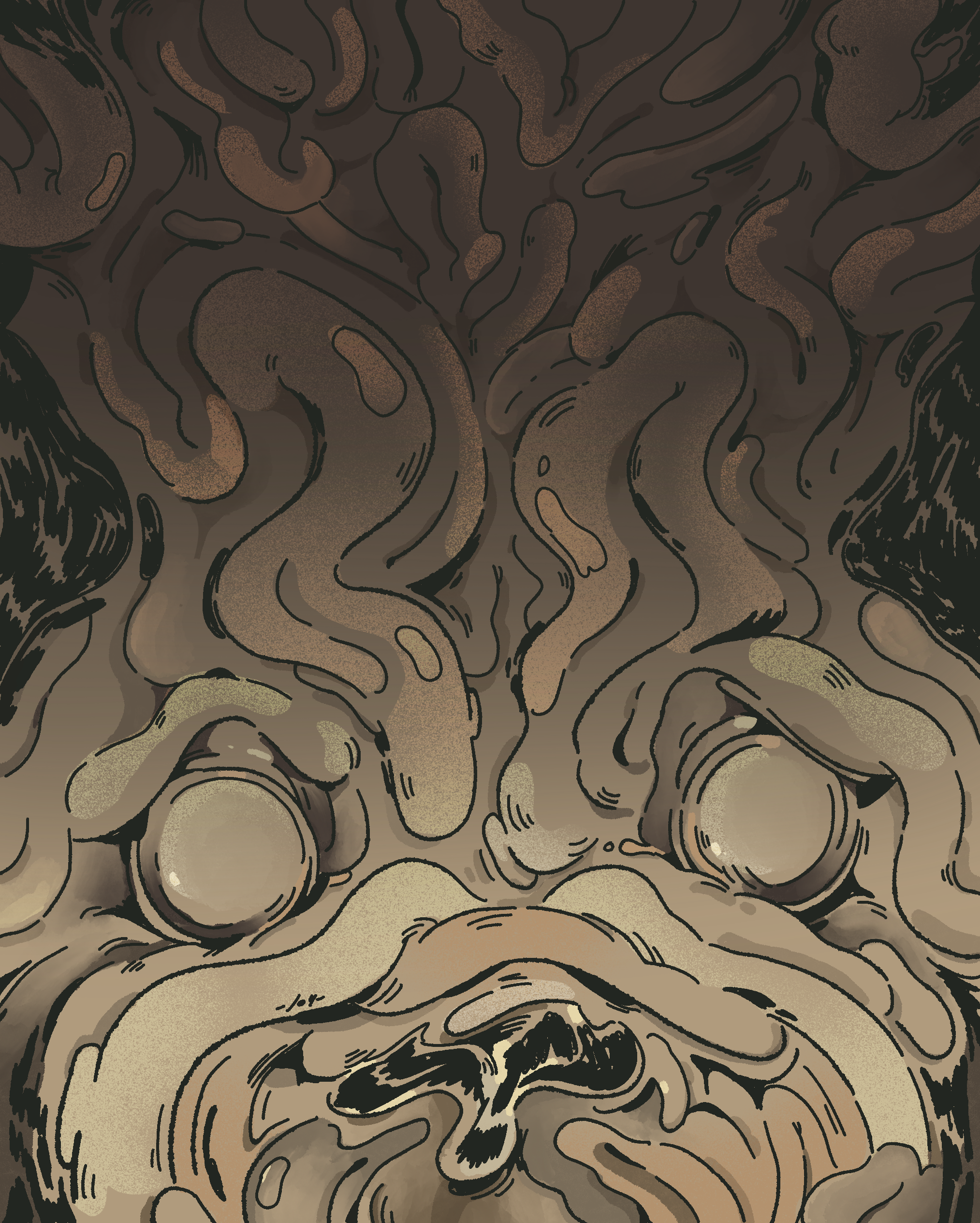 Deformazione del familiare: Il cane è l’animale domestico per eccellenza, simbolo di fedeltà e compagnia. Nel carlino, però, questa immagine viene deformata: la sproporzione degli occhi, la testa troppo grande, l’assenza quasi totale di muso lo rendono perturbante. È familiare, ma in una forma che tradisce le aspettative di normalità.